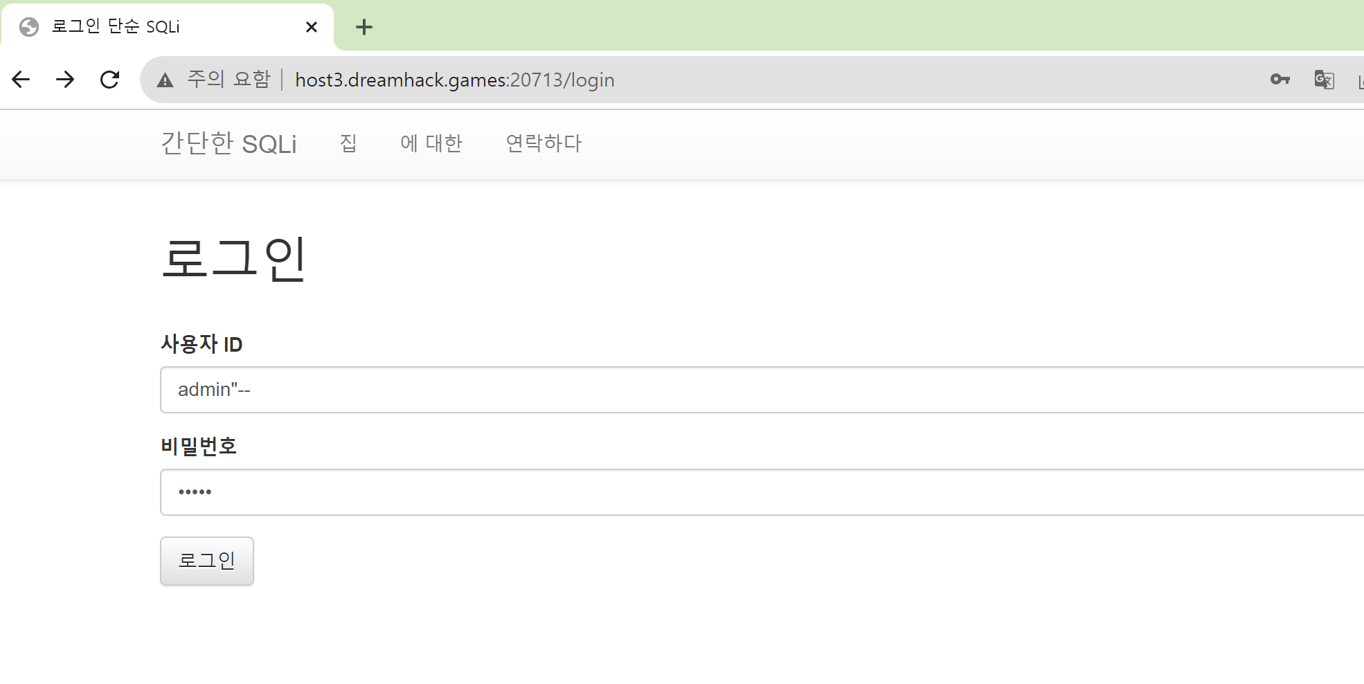 정을 조회하는 방식이 아닌 단순히 로그인만 하면 해결할 수 있다는 것을 파악할 수 있습니다. 간단한 sql injection을 통해 로그인 우회를 실행할 수 있습니다.