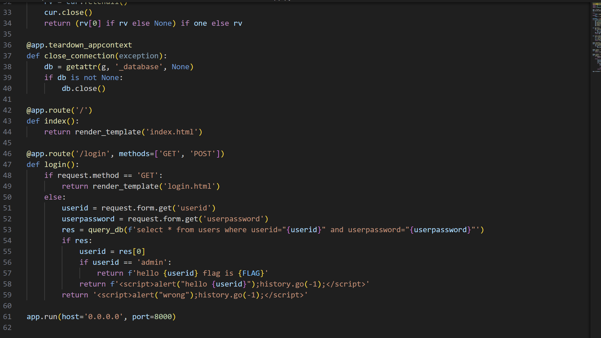 @app. route가 총 2개 ('/') , ('/login', methods=['GET', 'POST']) 임을 알 수 있었습니다.