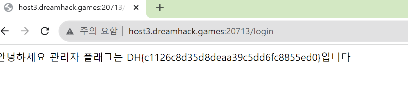 이렇게 되면 쿼리문은 참 값으로 판정이 되기에, admin 계정으로 로그인되어 flag가 출력되는 것을 확인할 수 있습니다.