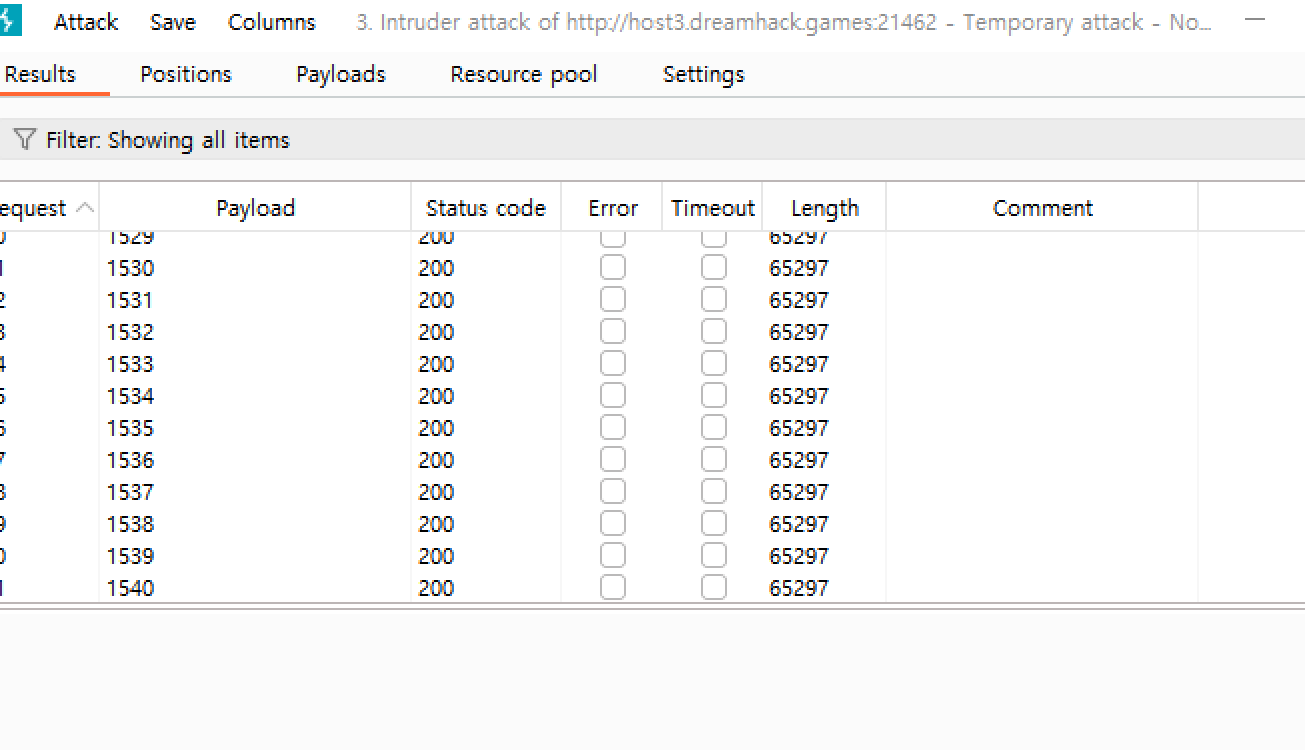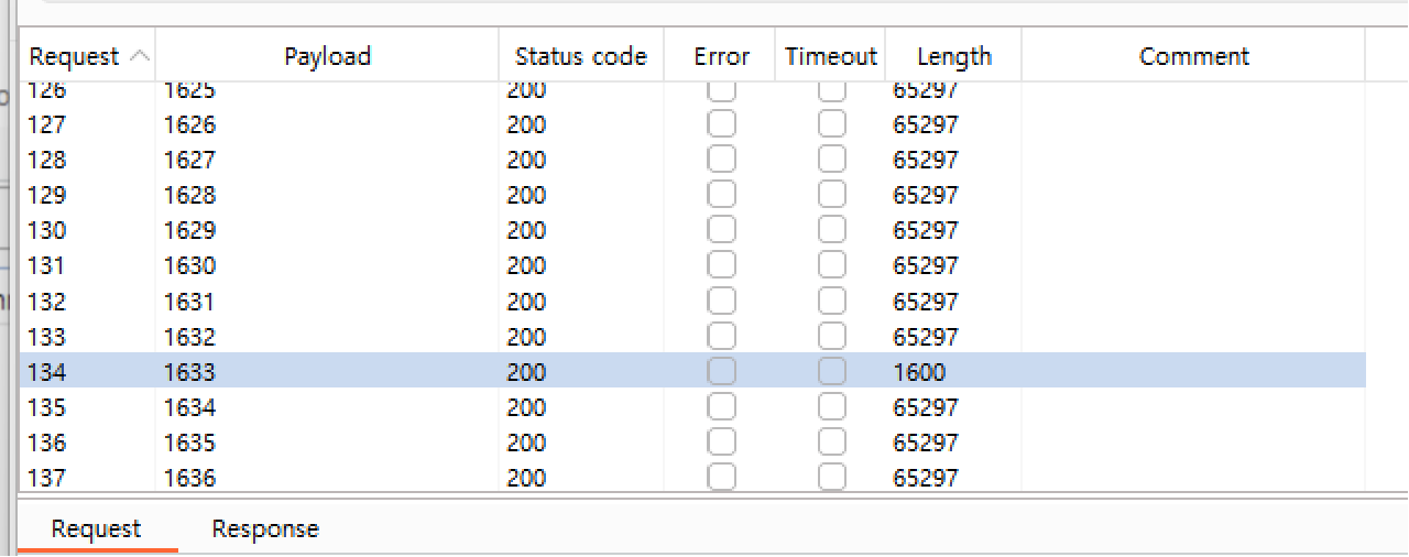 공격할 때는 request를 이용하기에 POST 옆의 메뉴 버튼을 눌러 intruder(인트루더)로 보내었습니다.
