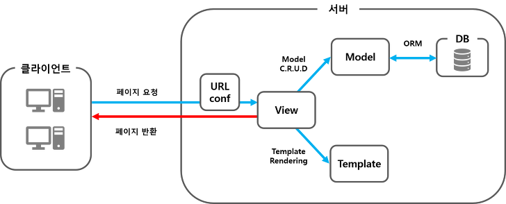 5) view 는 데이터를 적절하게 가공하여 Template 으로 전달합니다. Template 은 이 데이터를 사용하여 사용자가 볼 최종 HTML 페이지를 생성합니다.