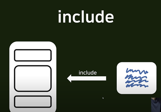 2. include : 자그마한 조각들을 가져와서 붙여넣는다.