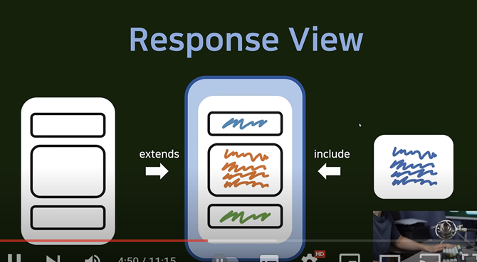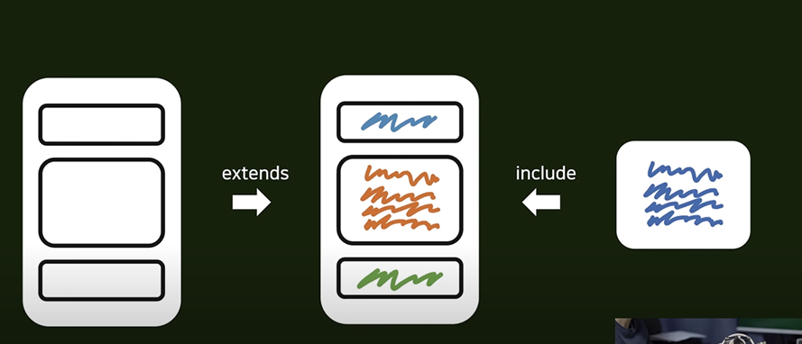 -> Extends 로 바탕을 만들고 include로 세부적인 내용들을 채워 넣기