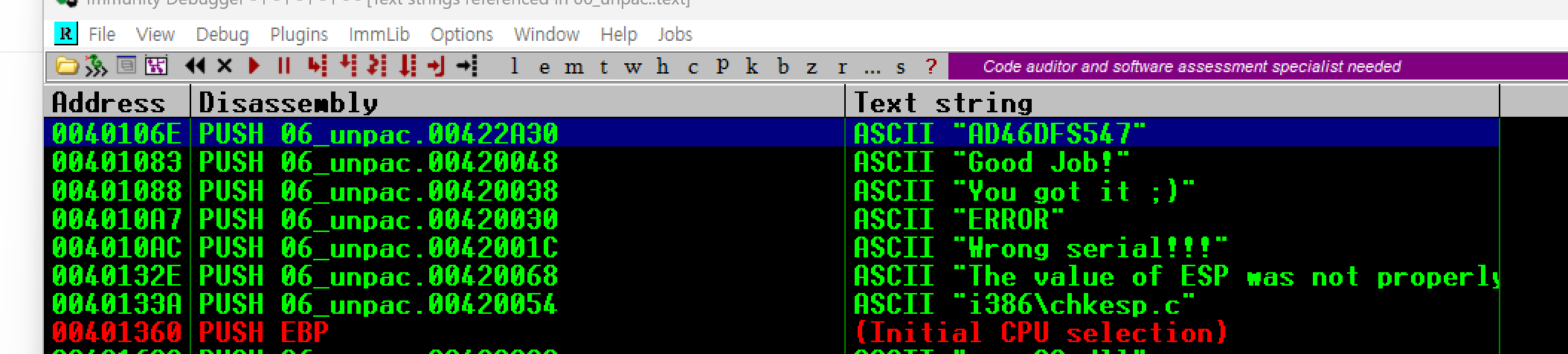 - All referenced strings: 코드에서 참조하는 문자열 테이블 확인 → 시리얼 후보 찾기.