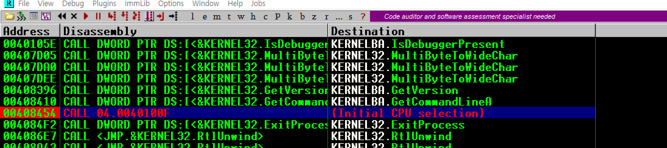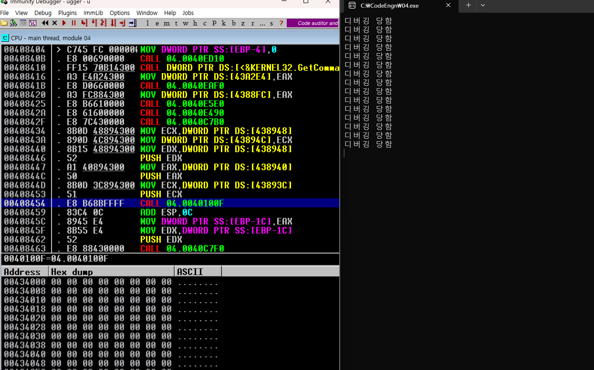 따라서 곧바로 Immunity Debugger에서 파일을 열어 분석을 진행한다.