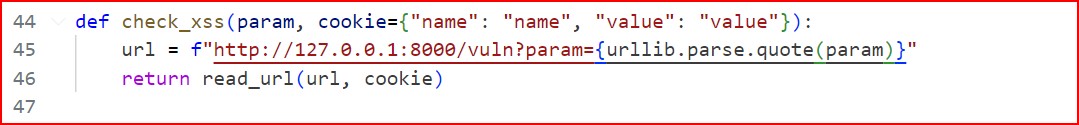 더불어 check_xss 함수를 보면, 입력한 url을 참고한다는 사실을 알 수 있습니다.