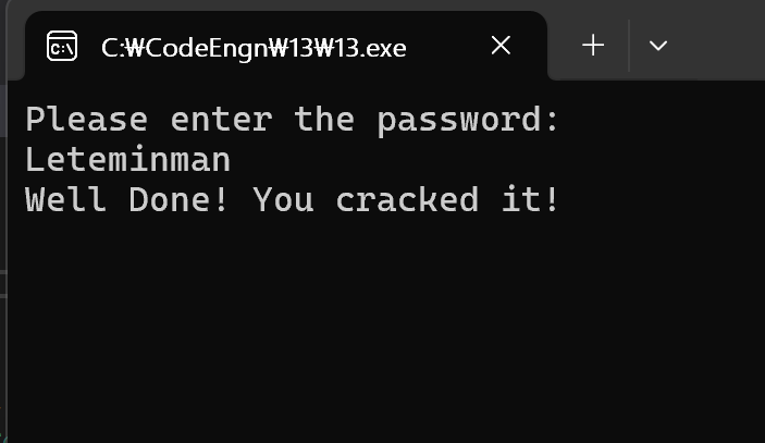 이를 입력하면 "Well Done!"이 출력됨을 확인할 수 있다.
