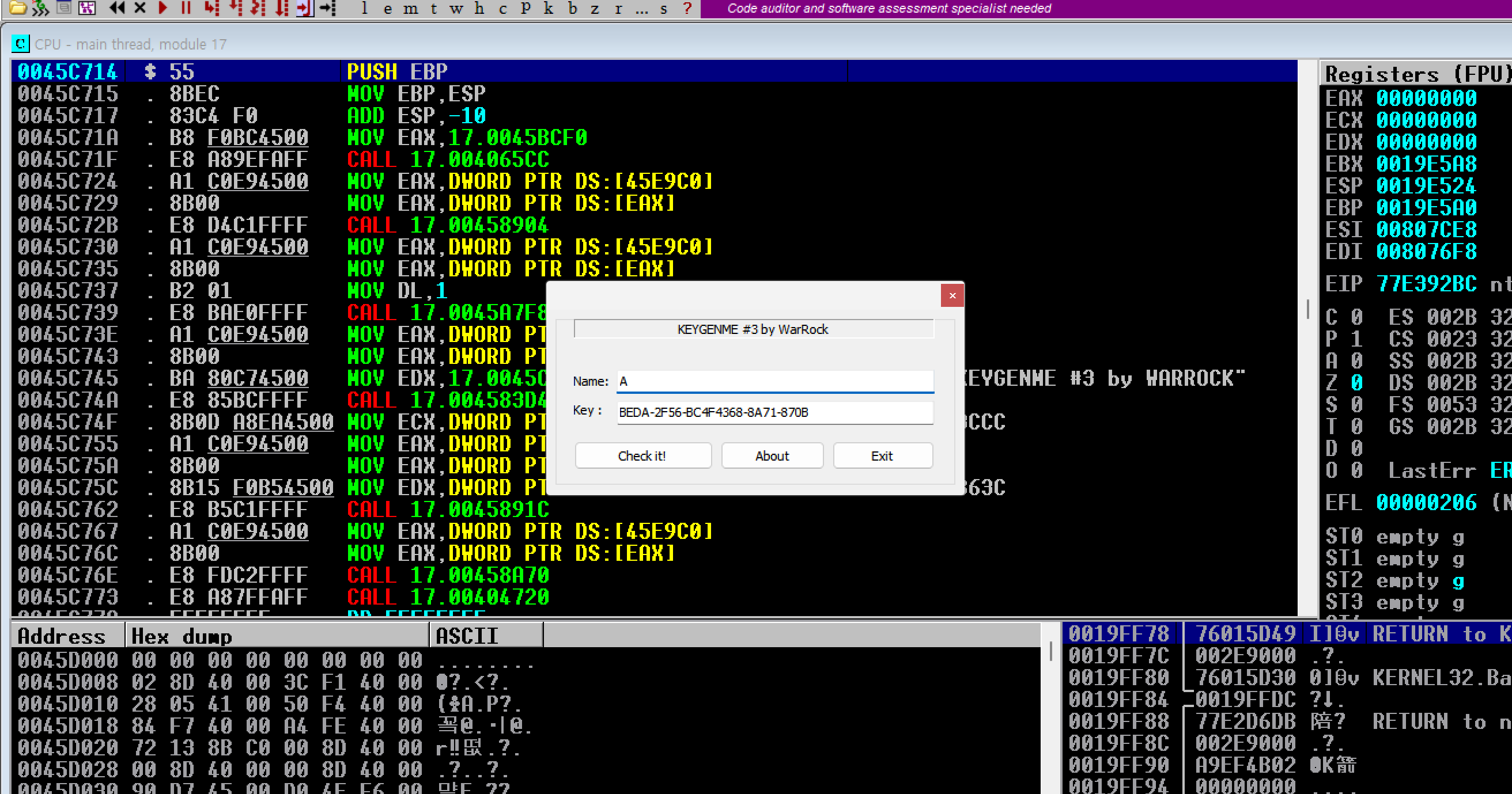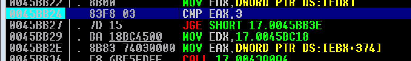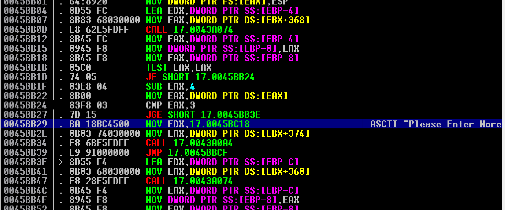 0045BB29 MOV EDX,17.0045BC18 ; "Please Enter More Chars..."