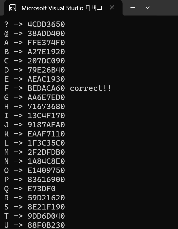 최종 Key가 BEDA-2F56-...로 시작하기 때문에, 내부 32비트 값의 상위 2바이트가 0xBEDA이어야 맞기 때문이다.