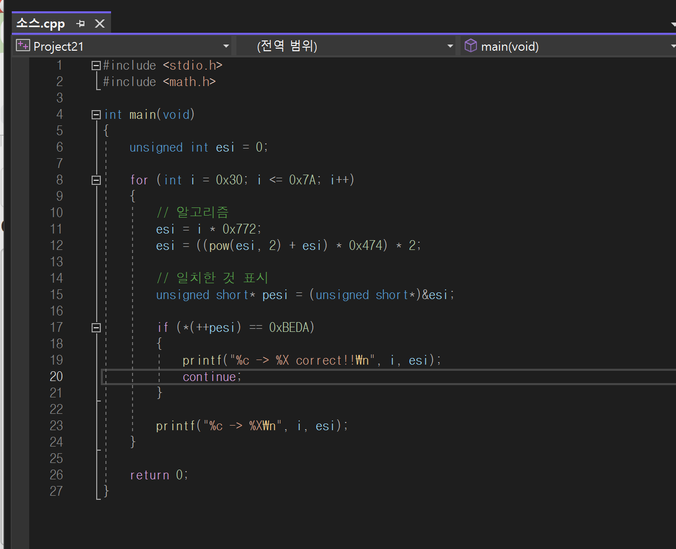 어셈블리 루프를 그대로 C로 옮긴 코드가 아래와 같다.